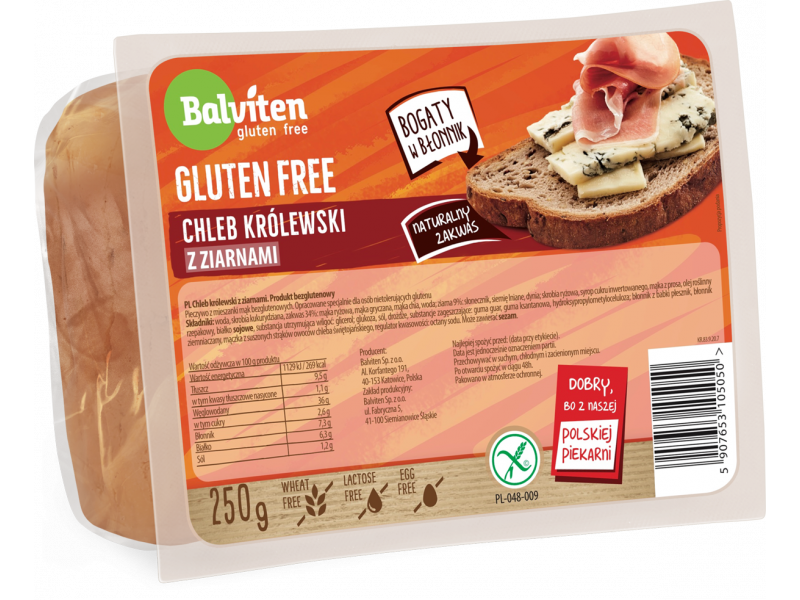 Chleb królewski ciemny z ziarnami. Produkt bezglutenowy