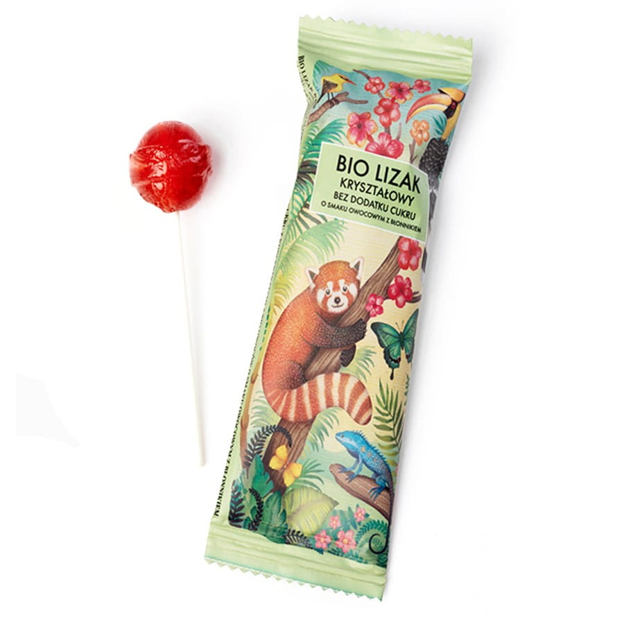 Bio Lizak o smaku owocowym z błonnikiem to pierwszy w EU produkt bez dodatku cukru z certyfikatem ekologicznym. Lizak jest wzbogacony naturalnym ekologicznym błonnkiem , który pomaga w prawidłowym funkcjonowaniu układu pokarmowego oraz ma działanie prebiotyczne stymulujące namnażanie pałeczek Lactobacillus. Dodane do produktu koncentraty owocowe i aromaty naturalne najwyższej jakości wzbogacają smak. Produkt przeznaczony jest dla dorosłych i dzieci powyżej 3 roku życia, odpowiedni dla Wegan. Niejednorodny kolor lizaka może wynikać z zawartości naturalnych ekologicznych składników.