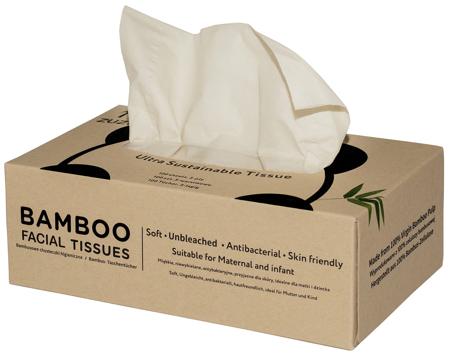 Opakowanie zawiera 100 sztuk 3 warstwowych chusteczek bambusowych.