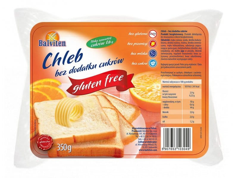 Chleb bez dodatku cukrów 350g. Produkt bezglutenowy