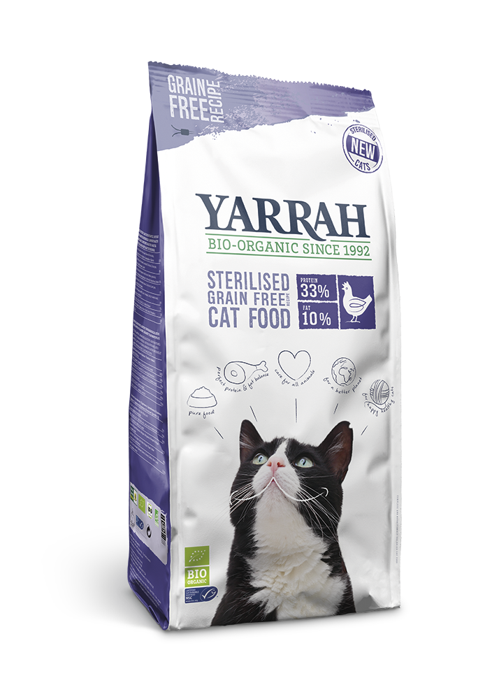 (DLA KOTA WYSTERYLIZOWANEGO) KARMA Z KURCZAKIEM I ŚLEDZIEM BIO 700 g - YARRAH