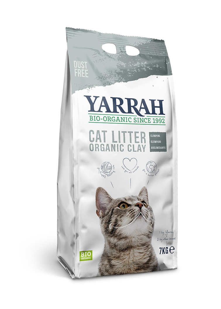 Zbrylający żwirek BIO. Bez dodatków chemicznych, zapachowych i dtergentów. Jeden kilogram zbrylającego żwirku dla kotów Yarrah jest równie wydajny jak 2 kg konwencjonalnego żwirku!