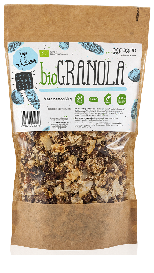 GRANOLA FIGA Z KOKOSEM BEZGLUTENOWA BIO 60 g - PAPAGRIN
