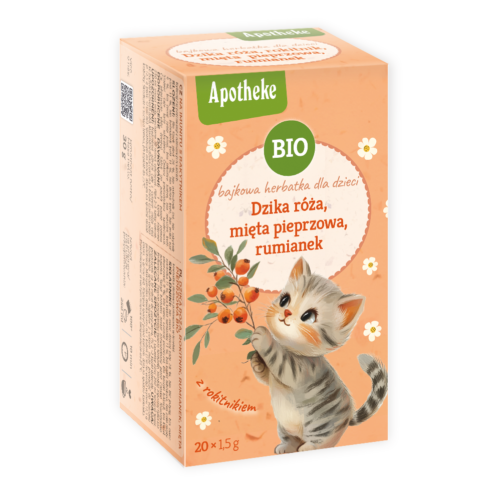 HERBATKA BAJKOWA DLA DZIECI - DZIKA RÓŻA, MIĘTA PIEPRZOWA, RUMIANEK I ROKITNIK BIO (20 x 1,5 g) 30 g - APOTHEKE