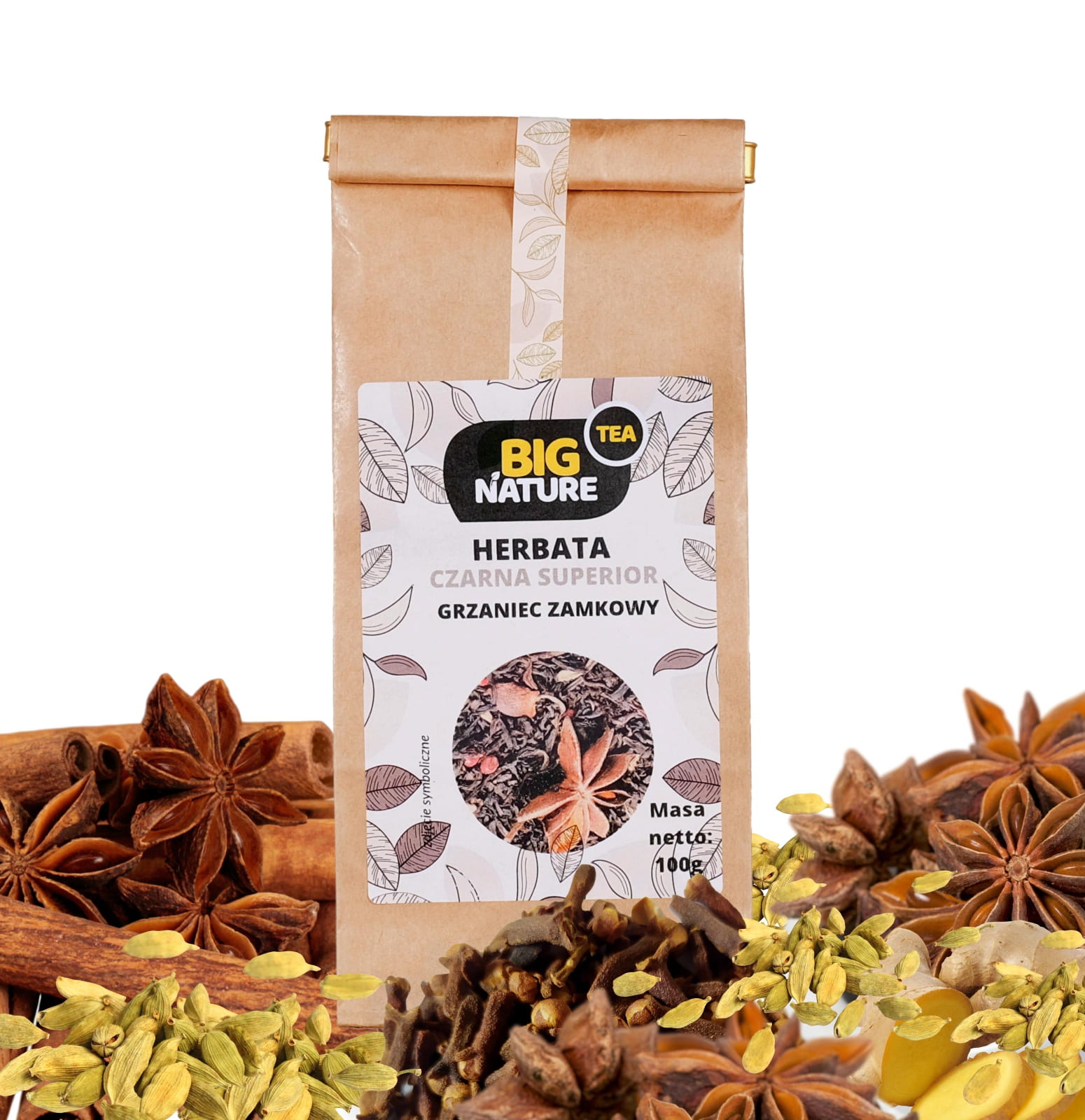 Opis: Opakowanie zawiera 100g czarnej herbaty superior "Grzaniec Zamkowy".