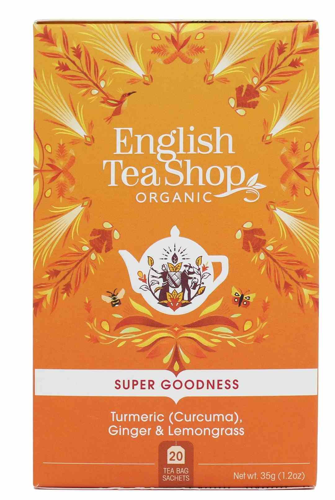 Organiczny imbir (30%), ekologiczna kurkuma (30%), ekologiczna trawa cytrynowa (14%), ekologiczna lukrecja (7%), organiczne goździki (6%), organiczne skórki cytryny (4%), organiczny kardamon (4%), organiczny czarny pieprz (3%), organiczne nasiona kminku (2%). ”Zawiera lukrecję - osoby cierpiące na nadciśnienie powinny unikać nadmiernego spożycia