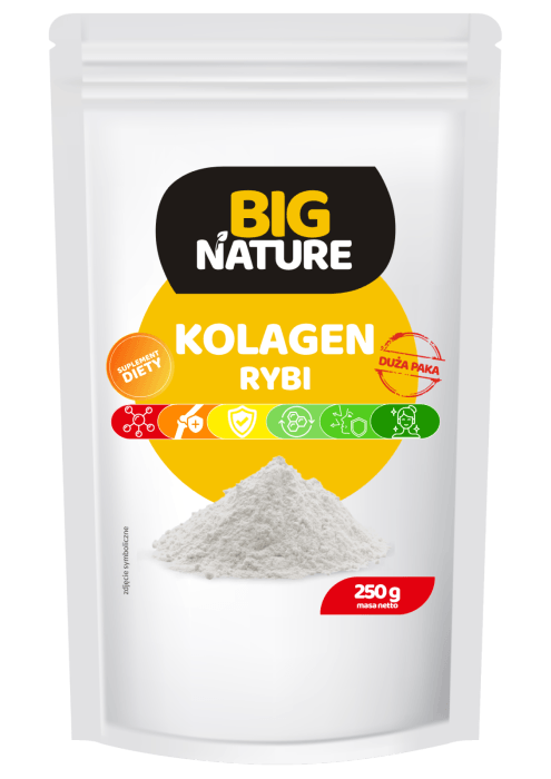 Odkryj tajemnicę młodości z naszym kolagenem rybim! Jest niezbędny dla budowy kości, skóry, stawów i wielu innych tkanek. Stanowi 30% zawartości białka w naszym organizmie. Po 25 roku życia zmniejsza się jego synteza, a brak kolagenu powoduje problemy z cerą, włosami i paznokciami oraz utrudnia gojenie się ran i ruch w stawach. Nasz kolagen rybi występuje w praktycznej formie granulatu, idealnej do szybkiego i łatwego użycia.