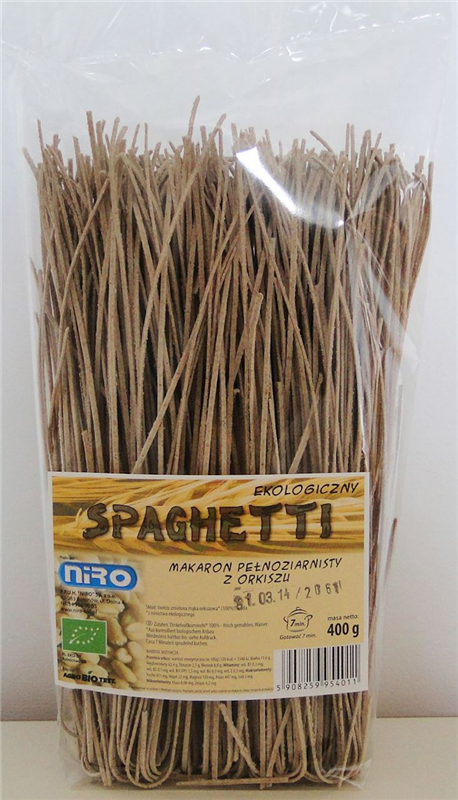 MAKARON (ORKISZOWY RAZOWY) SPAGHETTI BIO 400 g - NIRO
