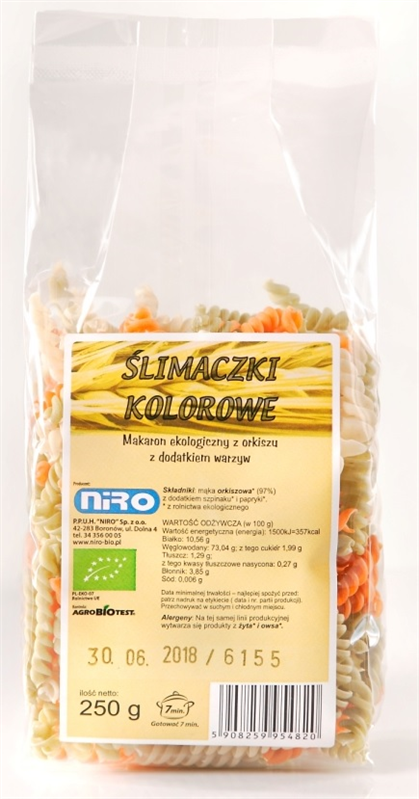MAKARON (ORKISZOWY TRÓJKOLOROWY) ŚLIMACZKI BIO 250 g - NIRO