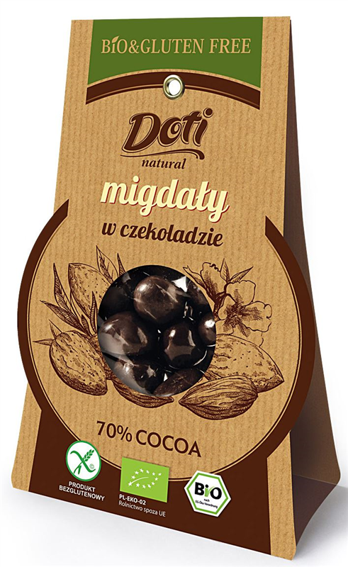 MIGDAŁY W CZEKOLADZIE GORZKIEJ BEZGLUTENOWE BIO 50 g - DOTI
