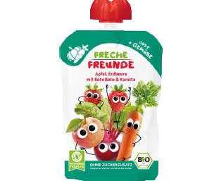 MUS JABŁKO - TRUSKAWKA - BURAK - MARCHEW BEZ DODATKU CUKRÓW BG OD 8 MIESIĄCA BIO 100 g - FRECHE FREUNDE