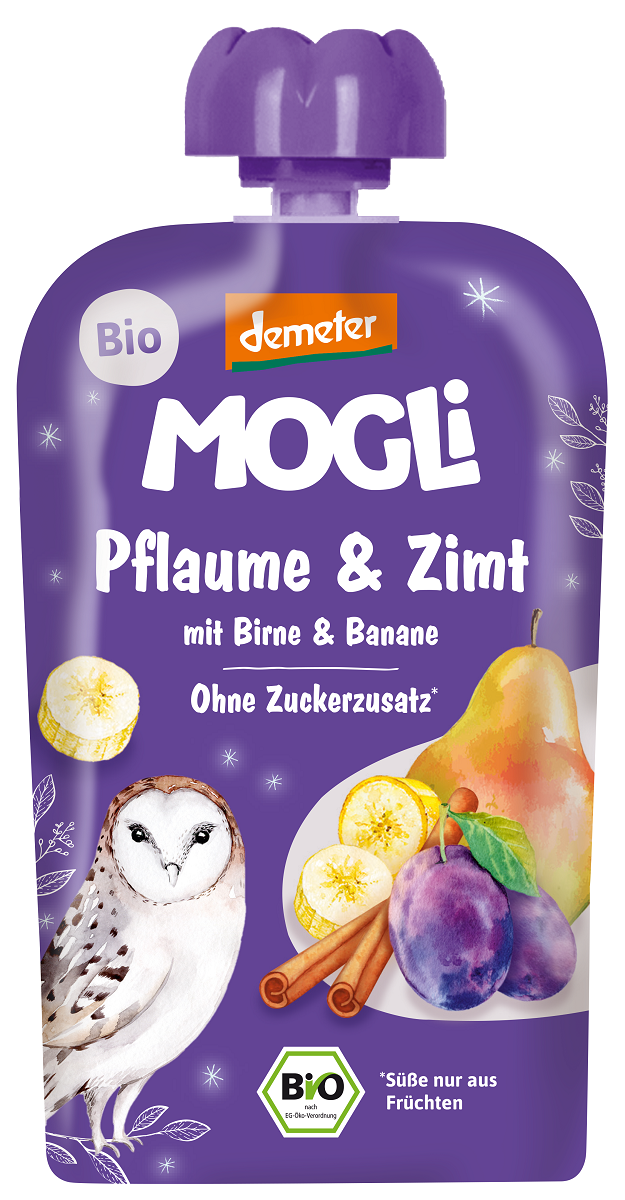 MUS ŚLIWKA - GRUSZKA - JABŁKO - BANAN - CYNAMON BEZ DODATKU CUKRÓW DEMETER BIO 100 g - MOGLI