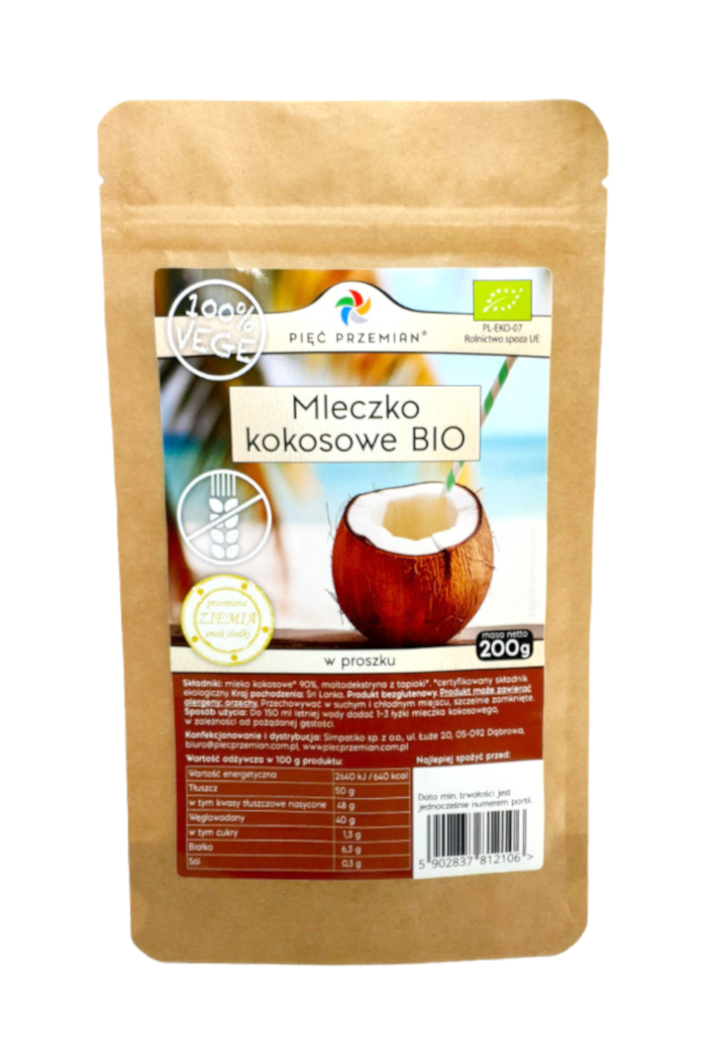 Mleczko kokosowe BIO w proszku bezglutenowe 200 g - Pięć Przemian