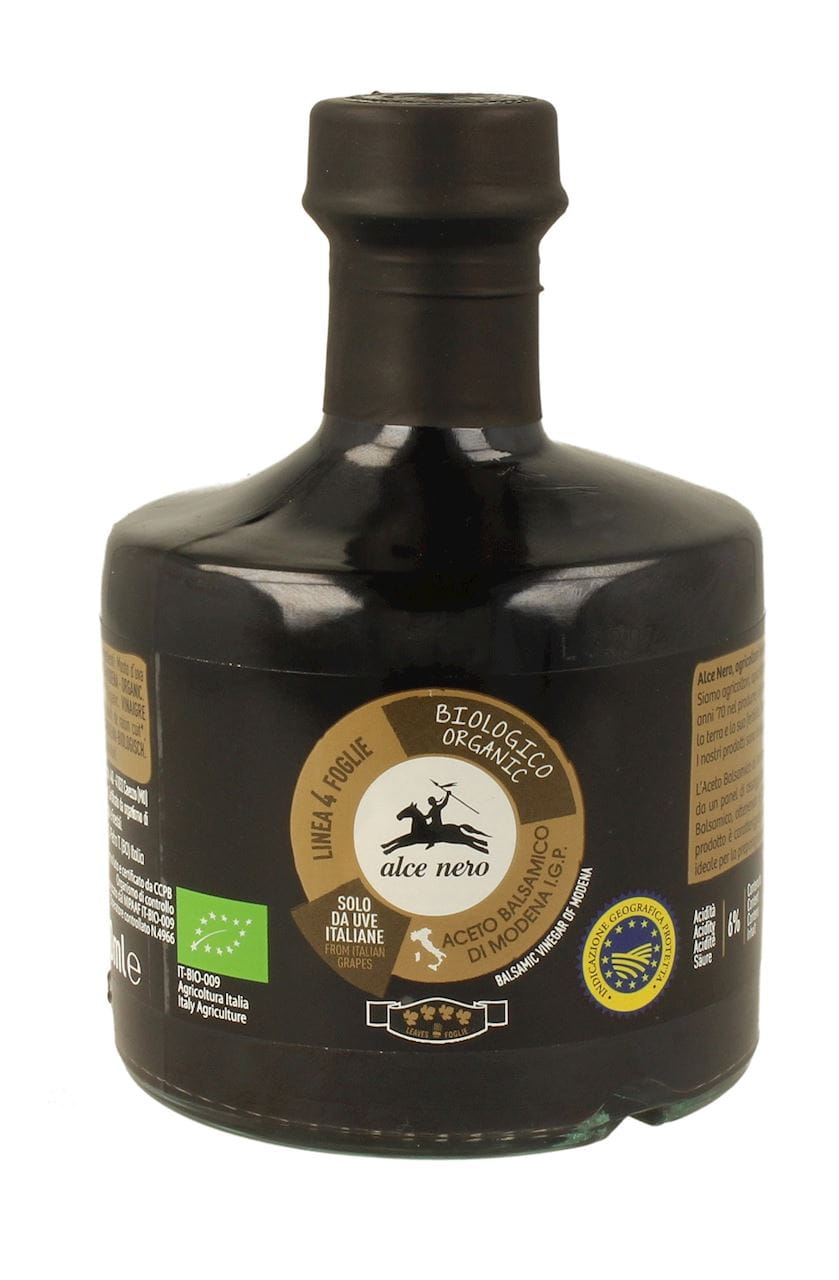 Ocet balsamiczny z Modeny z ekologicznych winogron Emilian, leżakowany w tradycyjnych drewnianych beczkach. Stanowi wyśmienity dodatek do potraw kuchni śródziemnomorskiej, m.in. do mięs, sałat, marynat i sosów. Kwasowość: 6%.