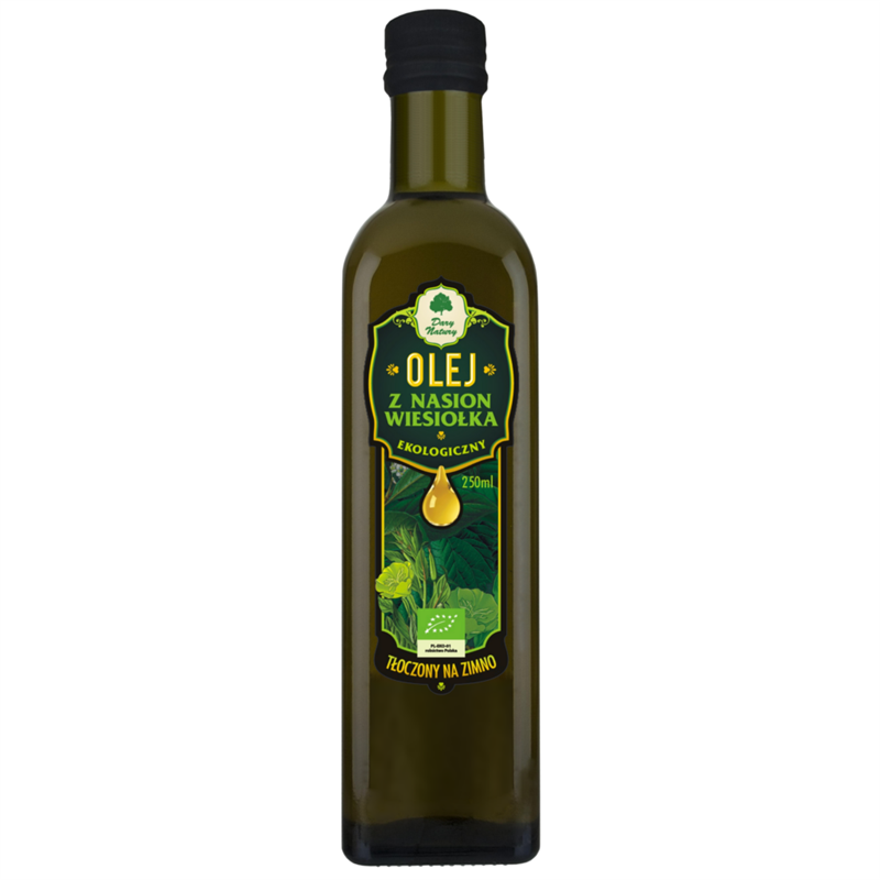 Olej tłoczony na zimno z nasion wiesiołka dwuletniego pochodzących z polskich ekologicznych gospodarstw rolnych. Olej można dodawać do różnych potraw lub spożywać sam.