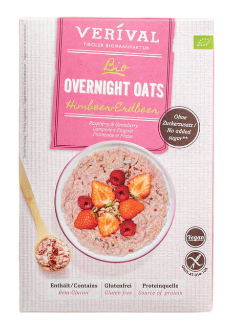 OWSIANKA PROTEINOWA Z MALINAMI I TRUSKAWKAMI BEZ DODATKU CUKRÓW BEZGLUTENOWA BIO 350 g - VERIVAL
