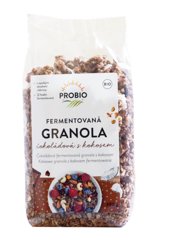 Granola po 12 godzinnej fermentacji o przyjemnym czekoladowym smaku. Fermentacja zwiększa wartość odżywczą produktu poprzez redukcję substancji antyodżywczych, tj. kwas fitynowy, lektyny. Nasza granola idealnie nadaje się na śniadanie podawana z jogurtem czy mlekiem ale też jako przekąska czy posypka do deserów, tj. lody czy owoce z bitą śmietaną. Możesz ją zabrać ze sobą wszędzie: do pracy, do szkoły, na wycieczkę/ Nasza kakaowa granola z kawałkami czekolady zawiera dużą ilość błonnika i odpowiednią ilość białka.