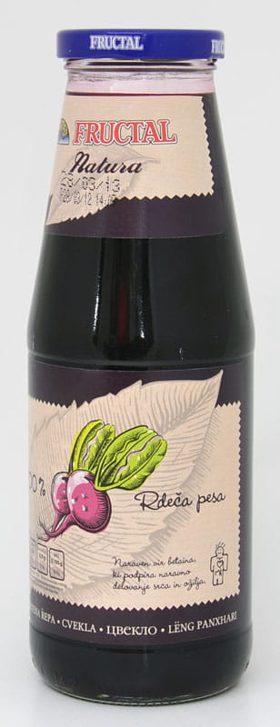 Składniki: sok z buraków czerwonych z koncentratu, kwas (kwas cytrynowy), przeciwutleniacz (kwas askorbinowy).