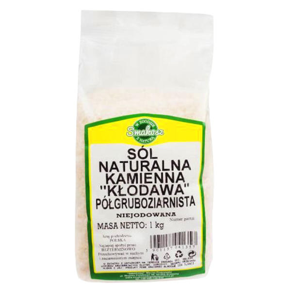 Sól kamienna KŁODAWSKA półgruboziarnista niejodowana 1 kg SMAKOSZ