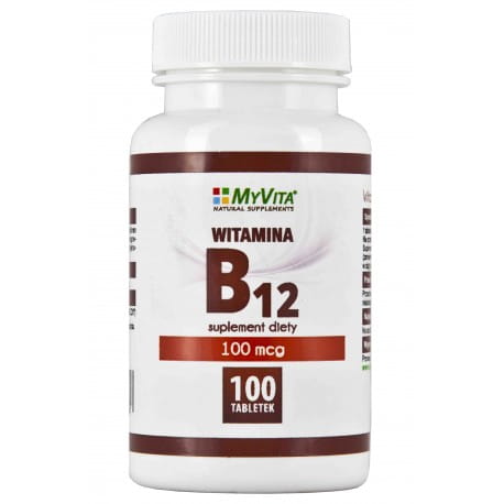 Składniki: substancje wypełniające: celuloza i wodorofosforan wapnia, substancje przeciwzbrylające: sole magnezowe kwasów tłuszczowych, witamina B12 - cyjanokabalamina 100 mcg.