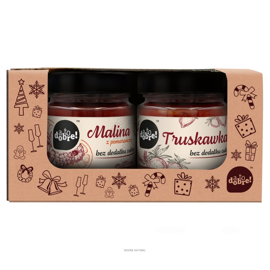 Zestaw: Malina + Truskawka bez dodatku cukru o konsystencji konfitury A To Dobre! 2x 195g