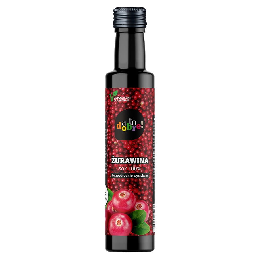 Sok z owoców żurawiny powstał metodą tłoczenia (NFC), bez dodatku cukru ani substancji konserwujących. Posiada piękny, ciemnoczerwony kolor i wyrazisty kwaskowy smak owoców. Żurawina to silny przeciwutelniacz. Niezastąpiona w chorobach reumatycznych , dróg mocozwych i pęcherza. Osad i mętność soku są naturalne i świadczą o wysokiej jakości.